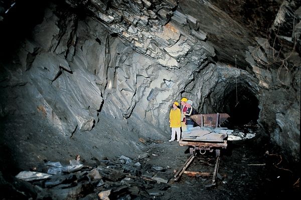 Das Schieferbergwerk bietet unter fachmännischer Führung einen interessanten Einblick in einen freitragenden Kammerabbau aus dem 20. Jahrhundert. Eine warme Jacke ist empfehlenswert